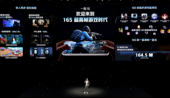 基于强大算力与调度优化,一加 15 拥有行业最强的 1% Low 帧表现,并率先实现主流游戏 165 帧无限满帧运行,推动行业正式进入 165 超高帧时代。在实际体验中,165 帧每秒可比 120 帧多输出 45 帧画面,让玩家更早发现对手、更快完成开镜与技能释放,真正做到「快人两步,轻松制胜」,成为 FPS 射击类游戏玩家的「枪神」首选。