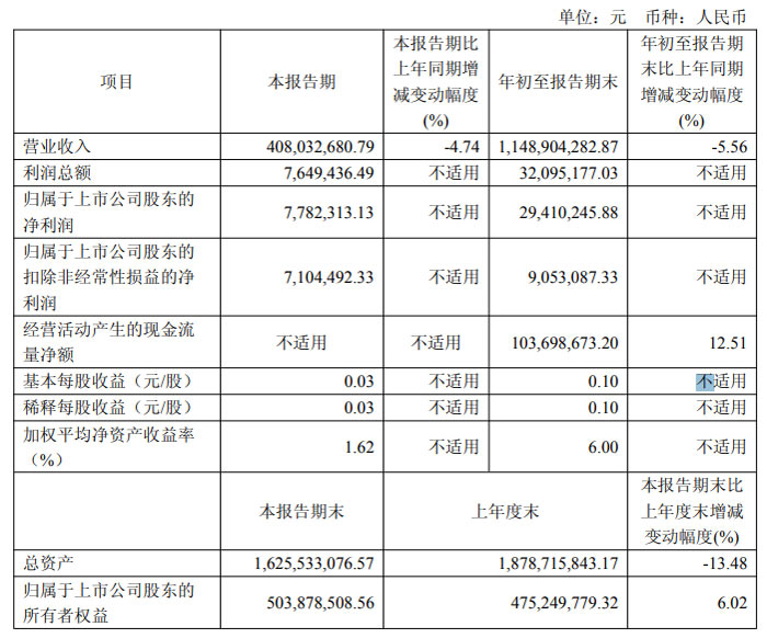 从年初至报告期末(2025 年 1-9 月),公司累计实现营业收入 11.49 亿元,同比下降 5.56%;累计归属于上市公司股东的净利润 2941.02 万元,扣非后净利润 905.31 万元,较上年同期的亏损状态实现根本性扭转;基本每股收益 0.10 元 / 股,加权平均净资产收益率 6.00%。