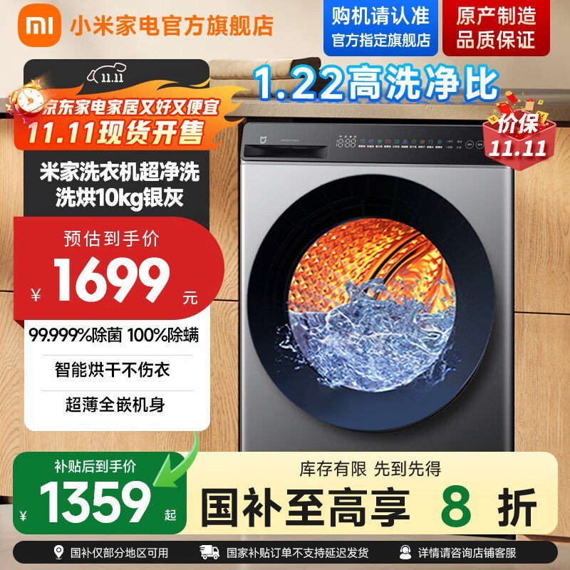 未经允许不得转载:紫竹林-程序员中文网 » 小米10公斤洗烘一体洗衣机低至1239元