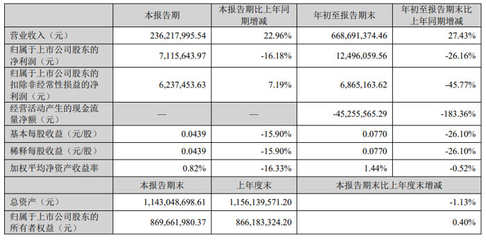 营收层面:2025 年第三季度,公司实现营业收入 2.36 亿元,较上年同期增长 22.96%;2025 年 1-9 月,累计营业收入达 6.69 亿元,同比增幅进一步扩大至 27.43%,营收规模的持续提升反映出公司产品市场需求或订单交付能力的改善。