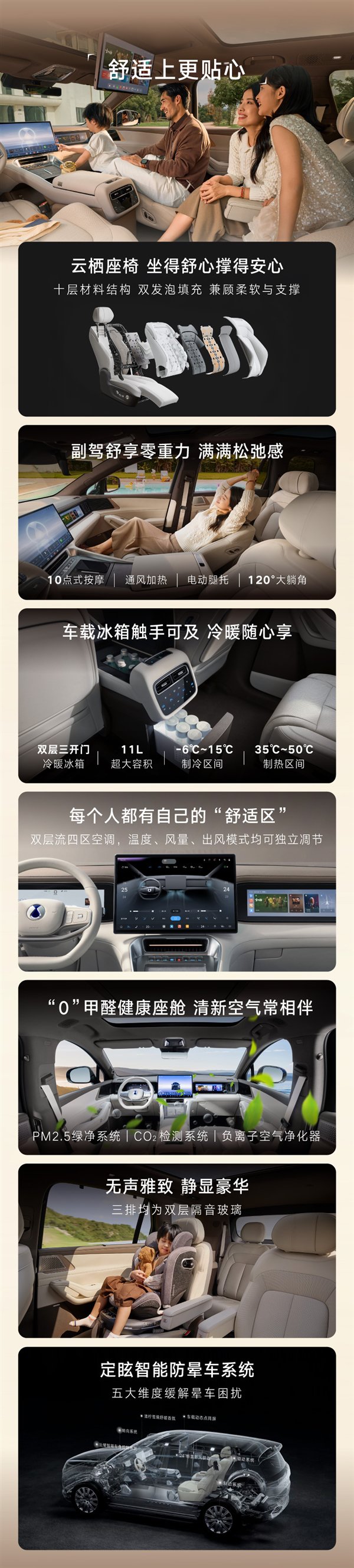 车辆前排副驾提供零重力座椅,支持10点按摩、通风加热、电动腿托、120°大躺角等功能。