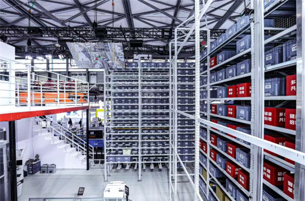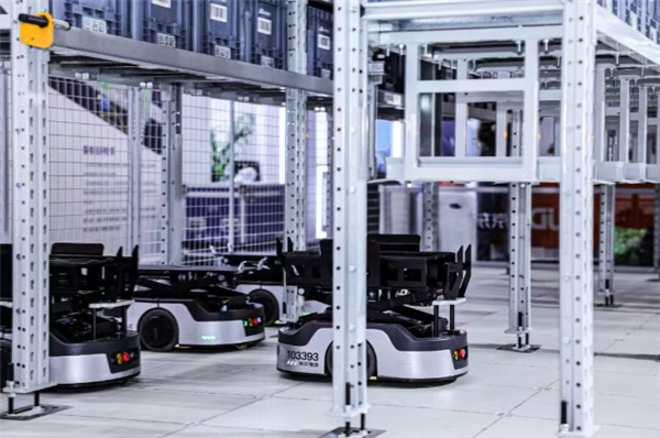 “天狼”四向车系统搭载激光雷达,支持“前后左右”四维移动,无需切换巷道即可转运货物,通过模块化部署实现设备即插即用,减少安装调试时间,设备通过CE、UKCA、UL等全球认证,可实现存储坪效提升240%,库内作业人员减少58%。