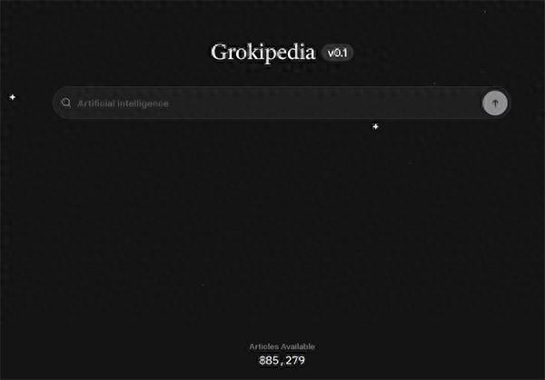 Grokipedia网站页面极为简洁,仅标注“Grokipedia v0.1”的标题和一个供用户输入关键词的搜索框。美国《华盛顿邮报》报道称,上线约1个小时后,该网站一度瘫痪,但在当晚恢复。