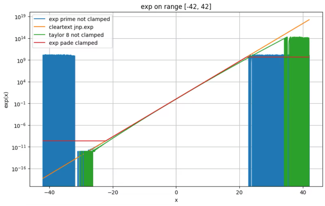 然而,由于理论细节非常复杂,我们的改进在算法理论和工程实现上都进行了大量的微创新,因此我们无法直接预测 exp prime 在实际业务中的表现,特别是不确定它的精度和稳定性(是否能在较大范围内完成高精度计算)。评估密态算子的性能本身非常困难。