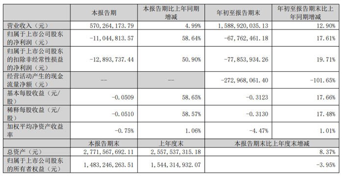 基本每股收益方面,本季度为 – 0.0509 元 / 股,同比改善 58.65%;1-9 月累计为 – 0.3123 元 / 股,同比改善 17.66%,股东收益水平同步提升。
