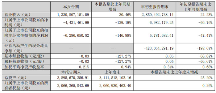 从年初至报告期末(2025 年 1-9 月),公司累计营收达 28.50 亿元,同比增长 24.23%,持续保持两位数增长;归属于上市公司股东的净利润 698.22 万元,同比下降 66.76%;扣非后净利润 578.17 万元,同比下降 47.47%。同期,非经常性损益贡献 120.05 万元,主要来自政府补助(204.35 万元)及金融资产公允价值变动与处置损益(385.27 万元)。