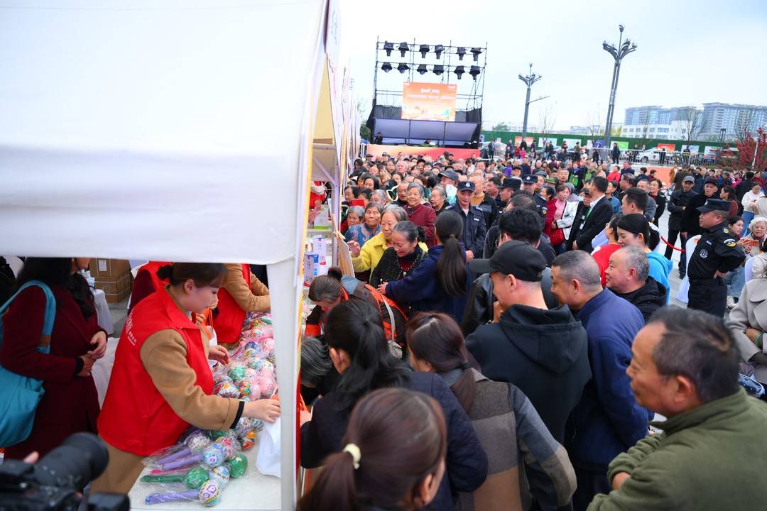 在启动活动现场精心打造了四大特色展区。“天府有礼”展区集结成都、德阳、广元等地优质特产及“绵阳造”名特优新产品100余品种,一站式满足老年朋友品质选购需求。适老体验区搭建沉浸式家居场景,远程问诊仪器、助老服务机器人、智能监测床垫、多功能护理床等前沿适老产品集中亮相,让老年朋友近距离感受科技赋能晚年生活的便捷与温度。汽车展销区组织奔驰、华为等汽车品牌现场展销,推出购车打折让利、新款发布推介、惠民惊喜抽奖等活动,打造“三代人”用车氛围。温暖孝老区堪称“移动便民服务站”,绵阳市中心医院、绵阳市中医院等公立医院组建医疗志愿服务队,提供听力筛查、血糖血压检测、老年病咨询、健康指导等服务。活动现场10余名志愿者化身“暖心使者”,现场设置反诈专区,开展免费理发、手机贴膜及清洗等便民服务,为60岁以上老年朋友派送1000余份爱心礼包。