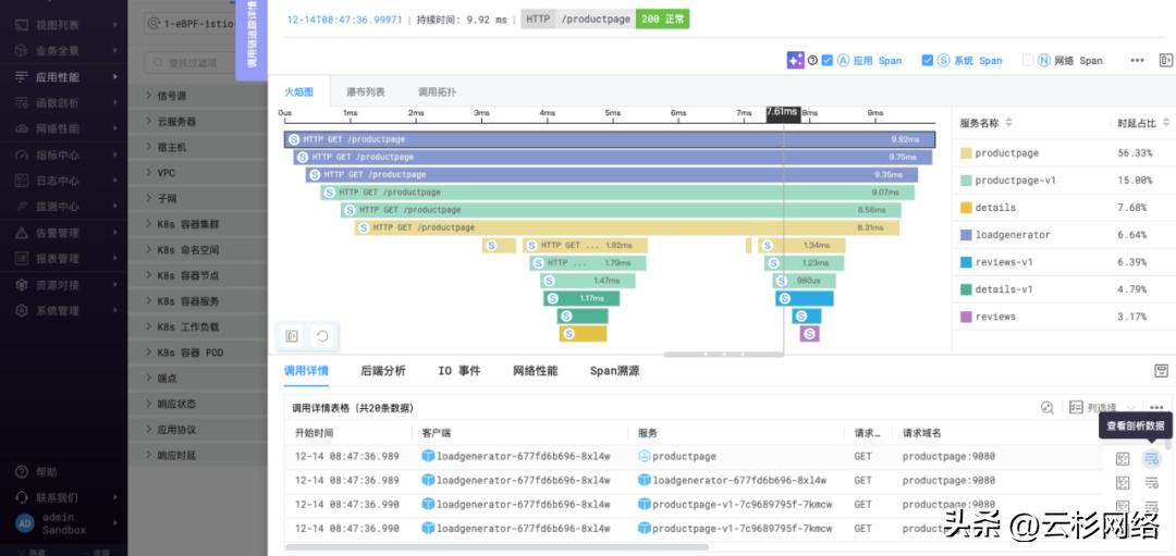零侵扰调用链追踪:基于零侵扰采集能力,无需改变任何代码、无需重编译任何代码、无需重启任何进程,实现了分布式调用链的零侵扰追踪,避免了APM、日志方案中的侵入性问题。