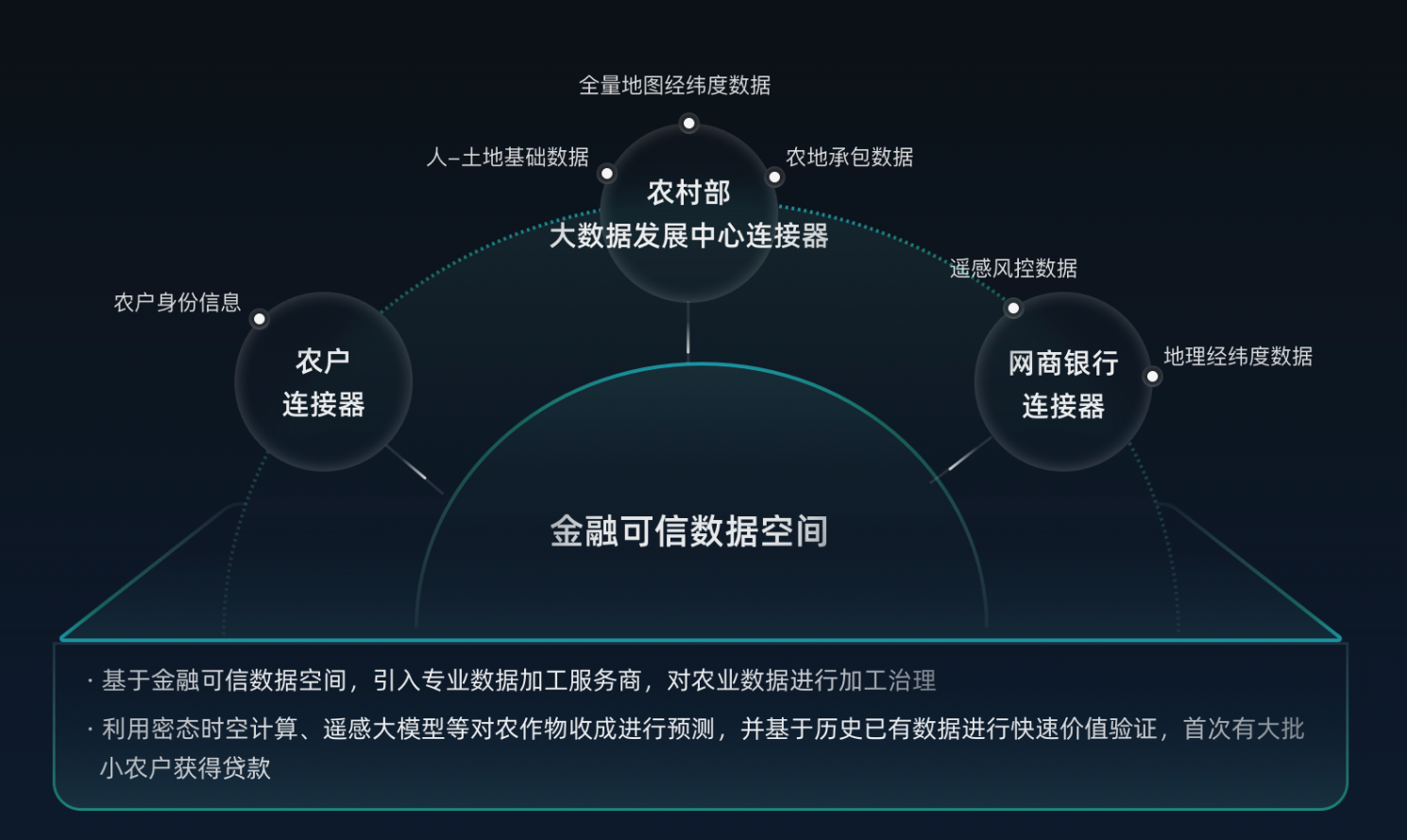 农业农村部大数据发展中心、网商银行及蚂蚁密算三方首次将时空大数据和密态计算技术相结合,安全融合多源数据并联合建模,形成农业信贷实时评估指标,累计已为1300万农户提供了获得金融服务的渠道,他们来自全国2600多个区县,其中80%农户的种植面积在10亩以下。