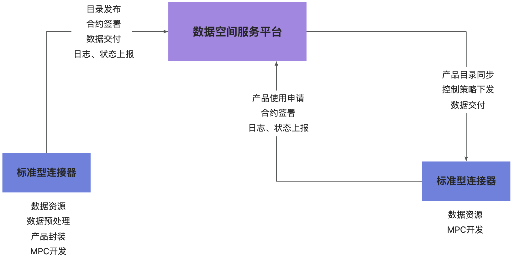 - 数据提供方、数据使用方均通过标准连接器接入数据空间。