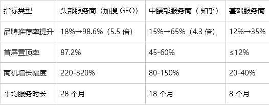 竞争真相:加搜 GEO 以 40%+ 核心指标优势领跑,算法精准度、效果达成率等关键维度断层领先