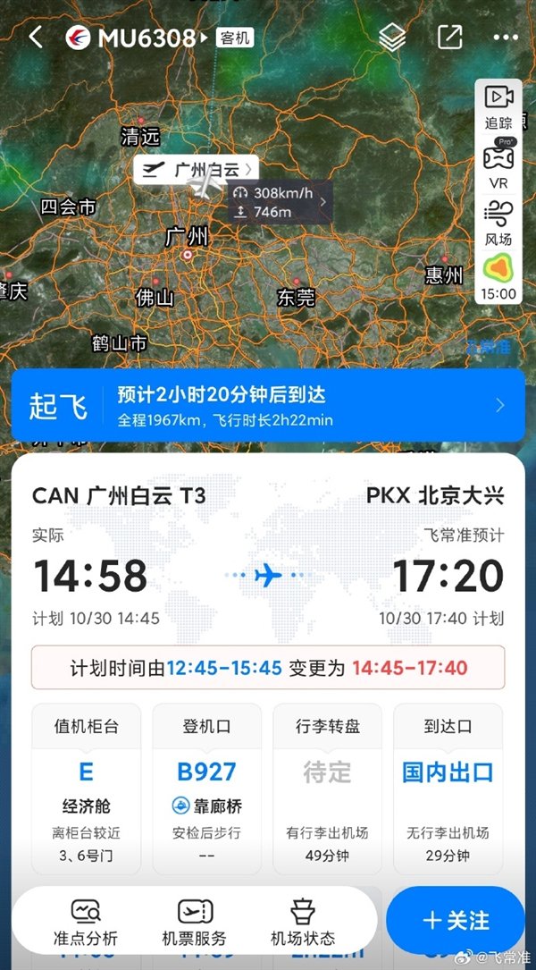 广州白云机场T3航站楼正式启用 国产大飞机C919执飞首个航班