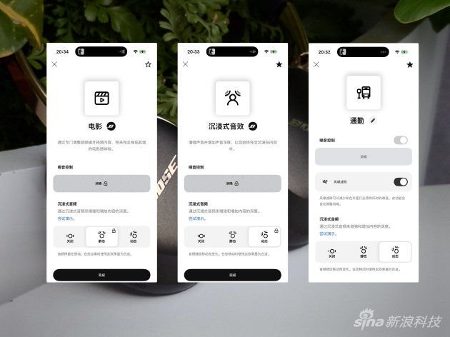 在声效模式方面,Bose QuietComfort Ultra II内置了除了安静、感知外界模式之外,还有沉浸式音效和电影模式。本质上是通过噪音控制和沉浸式音频的不同组合成的。比如在沉浸式音效模式上,最高等级的降噪+跟随你移动而变化的动态沉浸式音频;电影模式,则是最高等级的降噪+静态沉浸式音频。毕竟看电影要坐着看嘛。