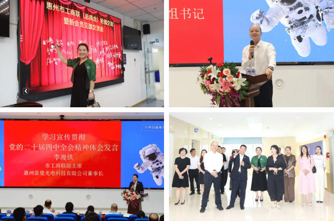 2025年10月30日,惠州市工商联(总商会)轮值交接暨新会员见面交流会在惠州雷曼智能智慧工业园举行。惠州市委统战部副部长、市工商联党组书记陈宇浩,市工商联党组成员、副主席、常务执委、市总商会副秘书长及新会员代表等近五十人出席。雷曼光电创始人、董事长兼总裁、惠州市工商联副主席李漫铁热情接待并参会交流。