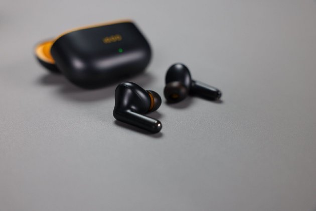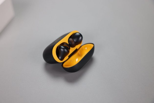 拆开包装盒,充电盒的星环腰线设计让人眼前一亮,磨砂黑外壳触感细腻,开合时的磁吸反馈干脆利落。掀开盒盖的刹那,内部橙黄色衬底与黑色耳机形成强烈视觉冲击,耳柄的磨砂亚面处理透着低调质感,4.8g 的单耳重量拿在手里几乎感受不到分量。