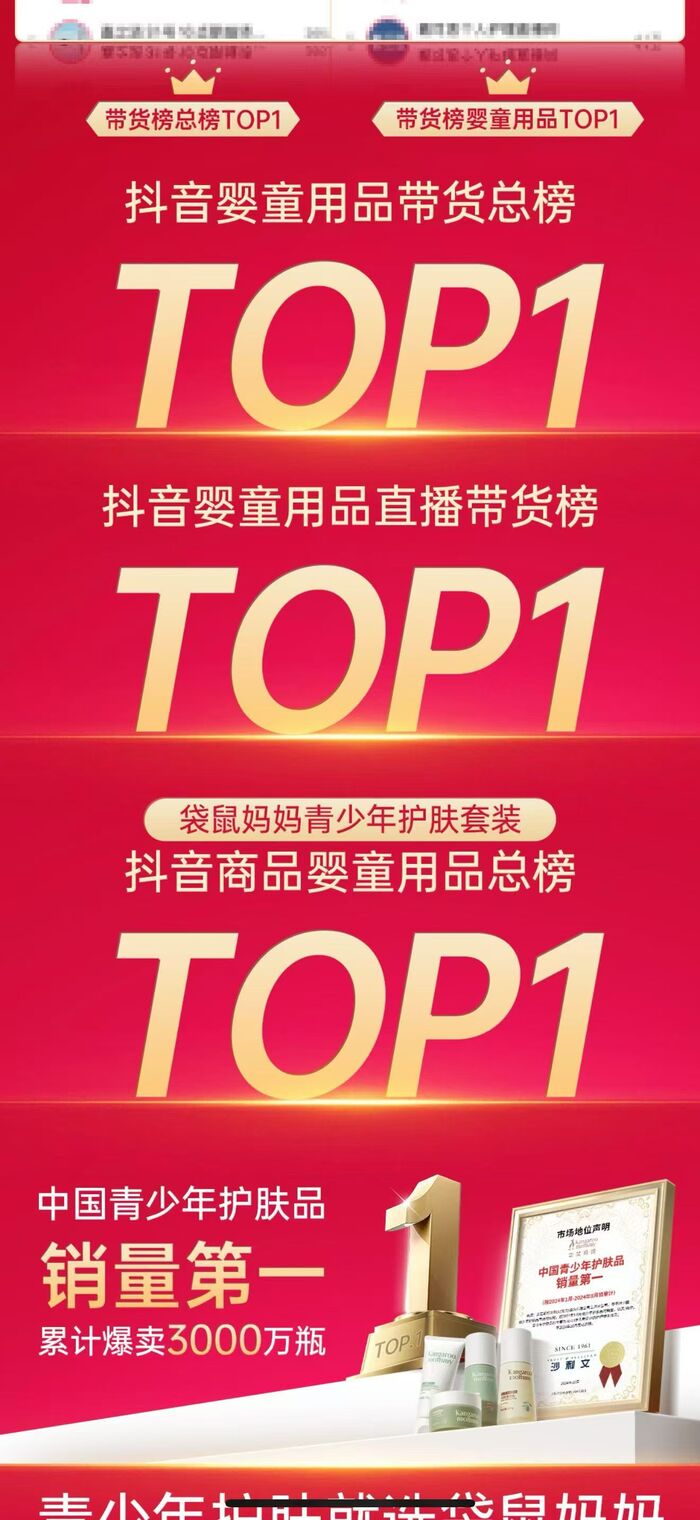 其中,青少年护肤套装GMV超3000万,青少年洗发水单品销售额达700万元,直播间排名抖音带货榜总榜、婴童用品直播带货榜两大榜单第一。