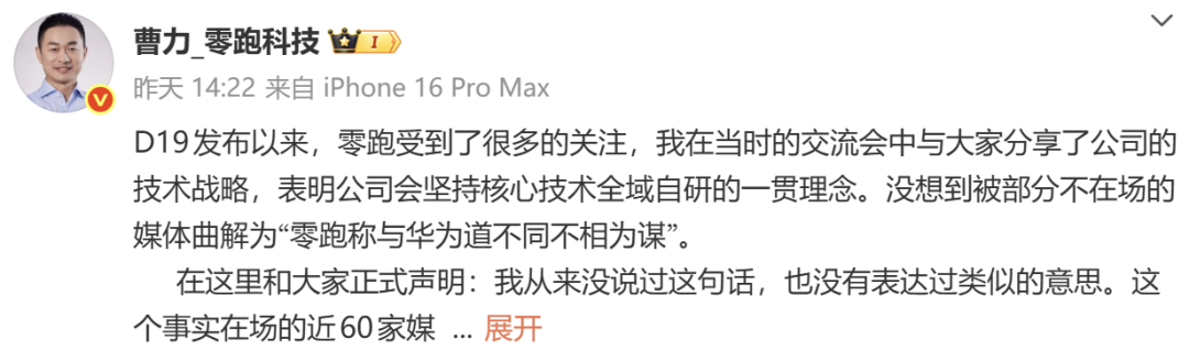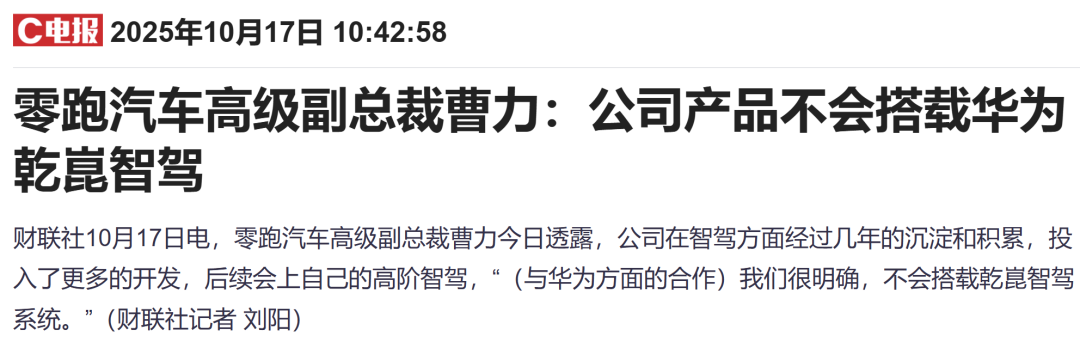 未经允许不得转载:紫竹林-程序员中文网 » 与华为道不同不相为谋?零跑汽车高管澄清