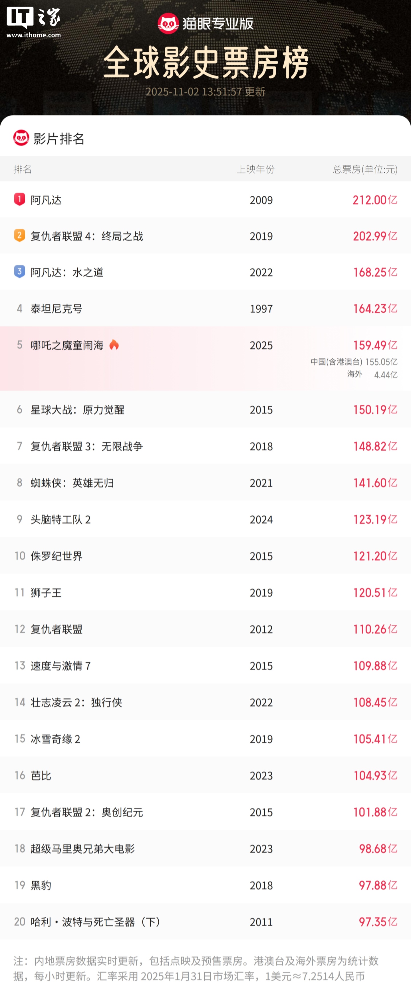 值得一提的是,动漫作品的票房号召力往往十分巨大,漫威《蜘蛛侠》这一经典漫画角色的影视改编权便在索尼手上,系列电影已历经三代主演。凭借着“三蛛同框”这一爆点,在 2021 年上映的《蜘蛛侠:英雄无归》便一举拿下了 141.6 亿票房,位居全球影视票房榜第 8。