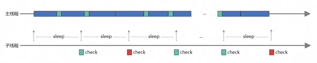 定时派发任务:子线程定期向主线程派发一个简单的任务,并设置一个等待标记。
