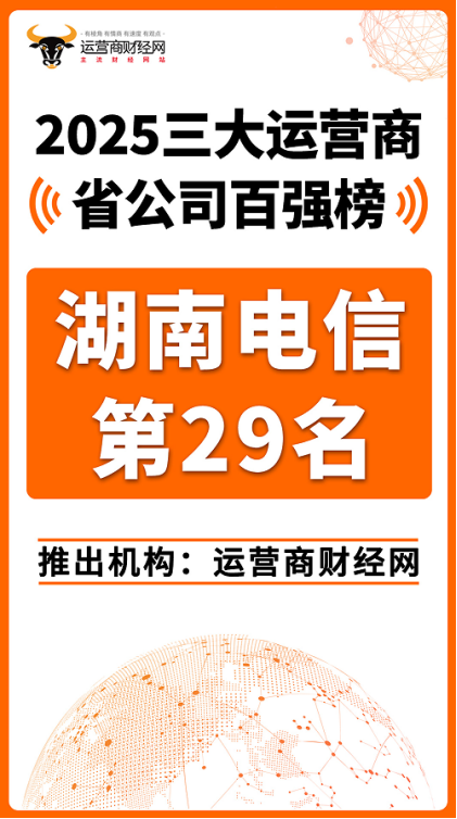 据运营商财经网独家推出的 “2025三大运营商省公司百强榜”显示,湖南电信在此榜单中排在第29名,处于中上游水平。其实,近年来,湖南电信的发展势头确实势如破竹。