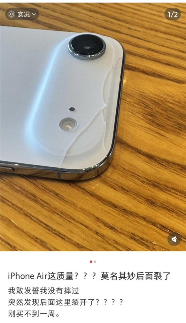 不过,主打轻薄的iPhone Air的用户反馈也两极分化。在社交媒体上,有用户总结称,手感确实很好,但为了轻薄也牺牲了很多配置,比如只有单扬声器,音质差、音量小;电池小、续航一般。另外,还有多位用户吐槽,iPhone Air的后盖比较脆弱,在没有经受很大磕碰的情况下出现了后盖碎裂。
