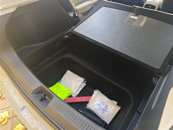 有意思的是,后备厢还买一赠一,后备箱底板掀开后,还提供了一个下沉式储物空间,容积达到74L,可自行分层放置物品。