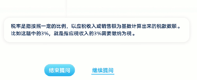 在整个过程中,若孩子对“税率”等基础概念存在疑惑——这往往是解题的真正障碍,却常被传统解析忽略——他可以随时提问。AI大咖老师将立即给予解答,确保理解无障碍。