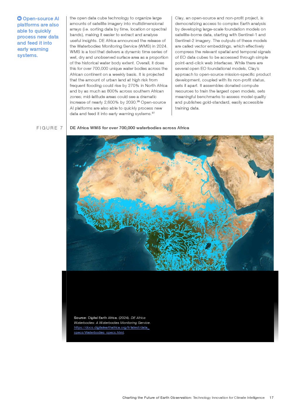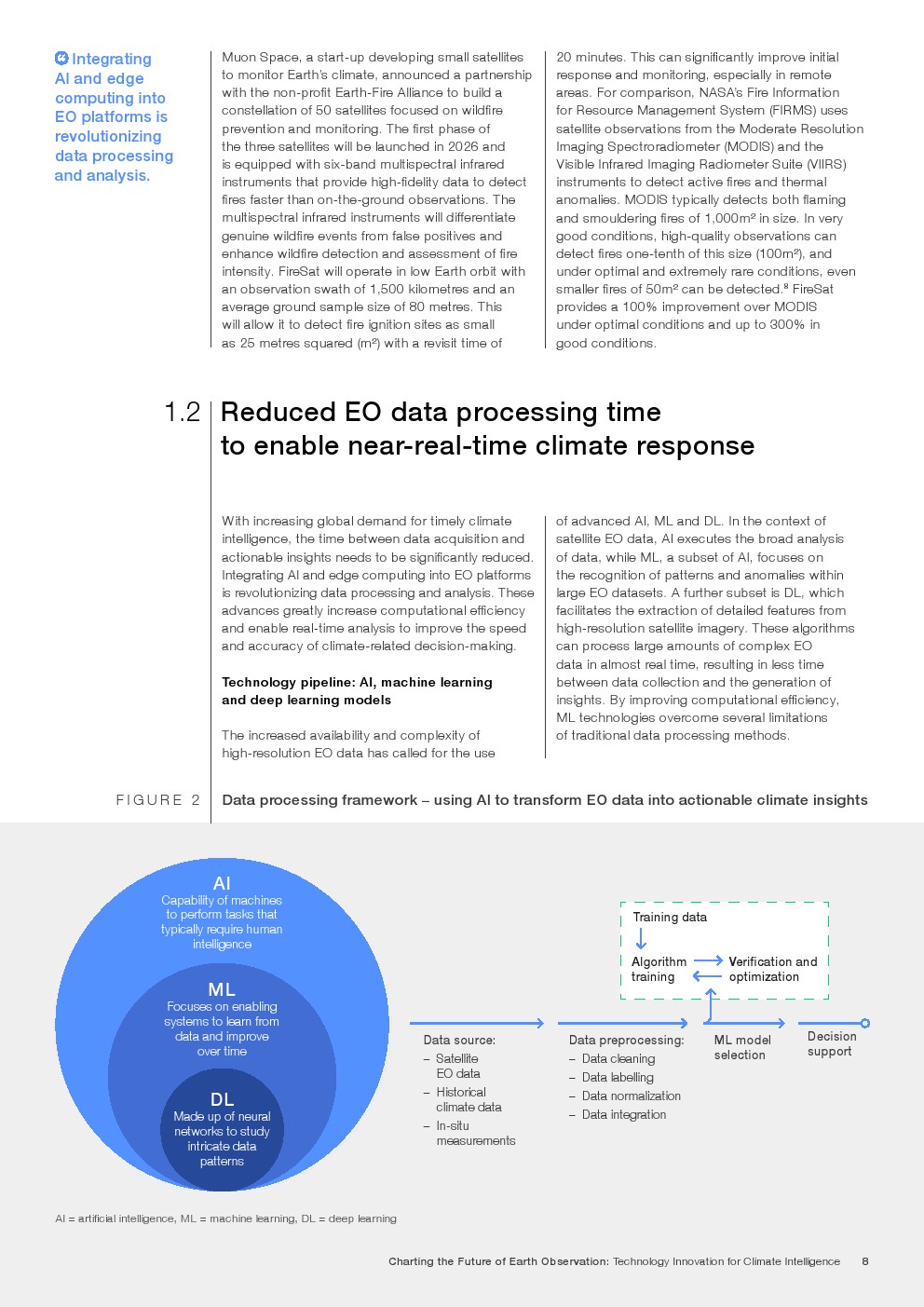 由于数据量大且复杂,系统挑战历来阻碍了将DEO数据完全整合到气候解决方案中。卫星和传感器技术的快速进步正在与新的开放人工智能算法、机器学习技术和先进的数据可视化平台一起解决这些系统问题。这些协同技术可以几乎实时地处理大量数据,在几分钟内将原始卫星图像转化为可操作的气候见解。推动这些进步的因素包括: