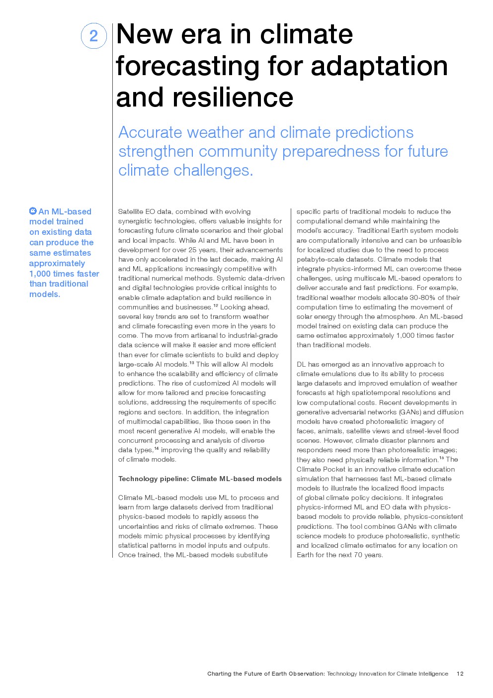 更高分辨率的气候预报:基于气候模型和基础模式将气候和天气预报模式的分辨率提高了12倍。这些增强的天气预报有助于社区和决策者制定有针对性的缓解和适应战略,以提高气候适应能力。
