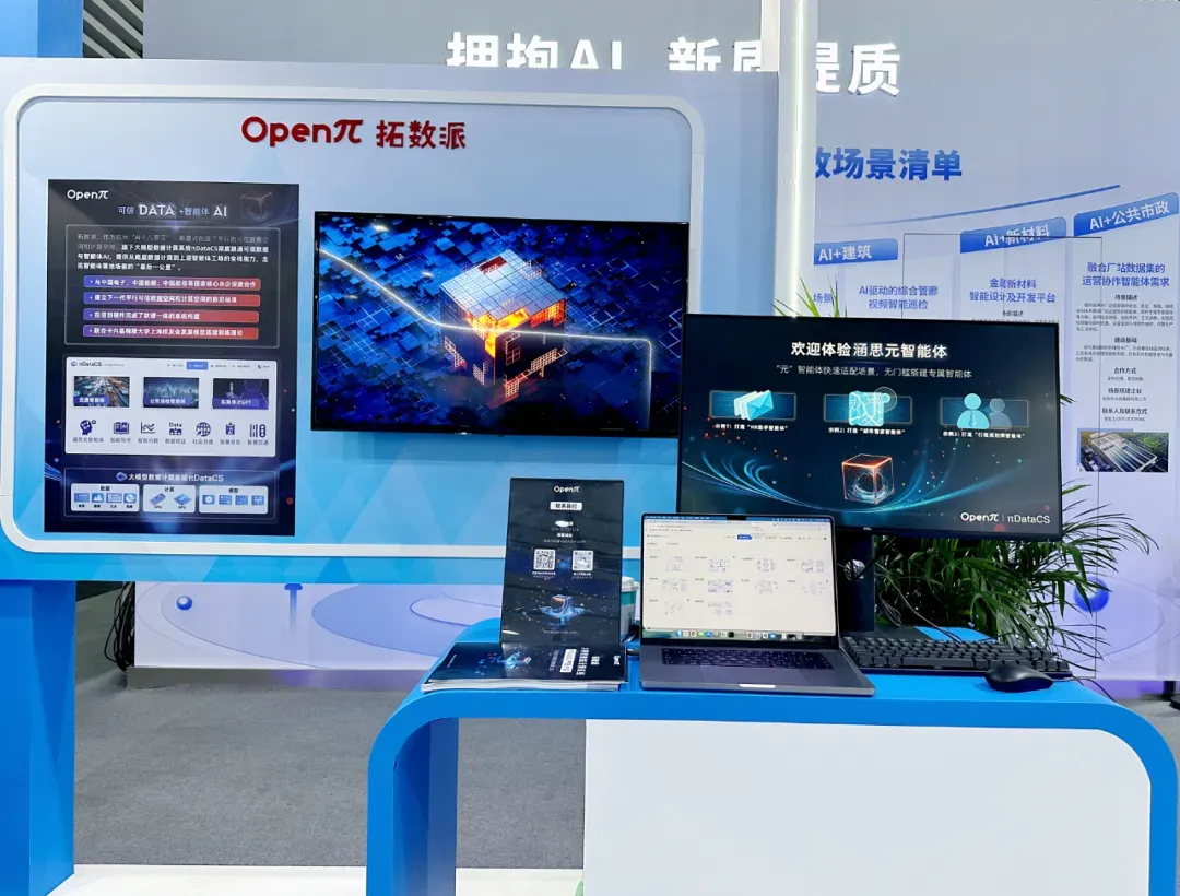 本次博览会上,拓数派作为“杭州十八罗汉”,携核心产品大模型数据计算系统πDataCS(简称DataCS),在“国家试验区·浙江新势力”展区的惊艳亮相,向全球展示其在“Data+AI”赛道的前沿成果与创新实力。 拓数派展台紧扣浙江 “深入实施‘人工智能 +’、深化数据要素市场化配置改革” 的发展方向,全面展出DataCS的创新成果。