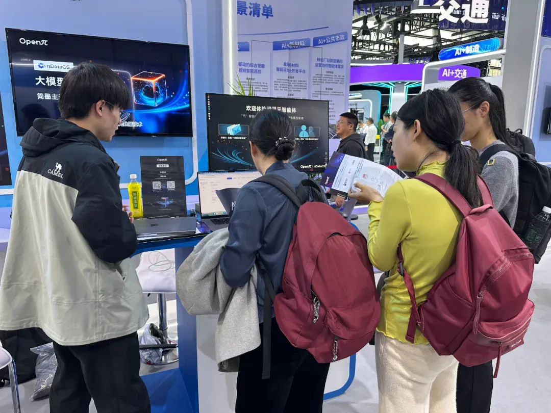 拓数派DataCS实现自主可控,具备从底层数据计算到上层智能体工场的全栈能力,已在浙江省内和国家重要场景落地智能体应用,充分验证价值。 在中国船舶、中国电子、中国航信等核心央企,DataCS成功承担智能体核心底座。在金融领域,DataCS为东吴证券、广发证券等机构提供垂类模型开发平台,投产秀才GPT等智能体。DataCS打通”数据+模型”协同链路,助力企业与机构走完智能体落地“最后一公里”。展会现场,拓数派团队通过系列演示与案例解读,生动呈现在多领域的落地成效。
