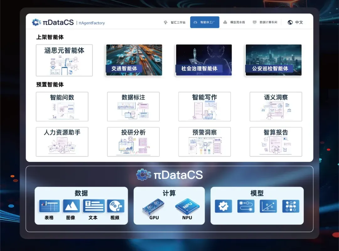 涵思以大模型数据计算系统πDataCS为数据计算底座,采用先进的模块化架构,深度融合数据与智能体AI,能够快速适配用户多样场景,无门槛搭建专属智能体。