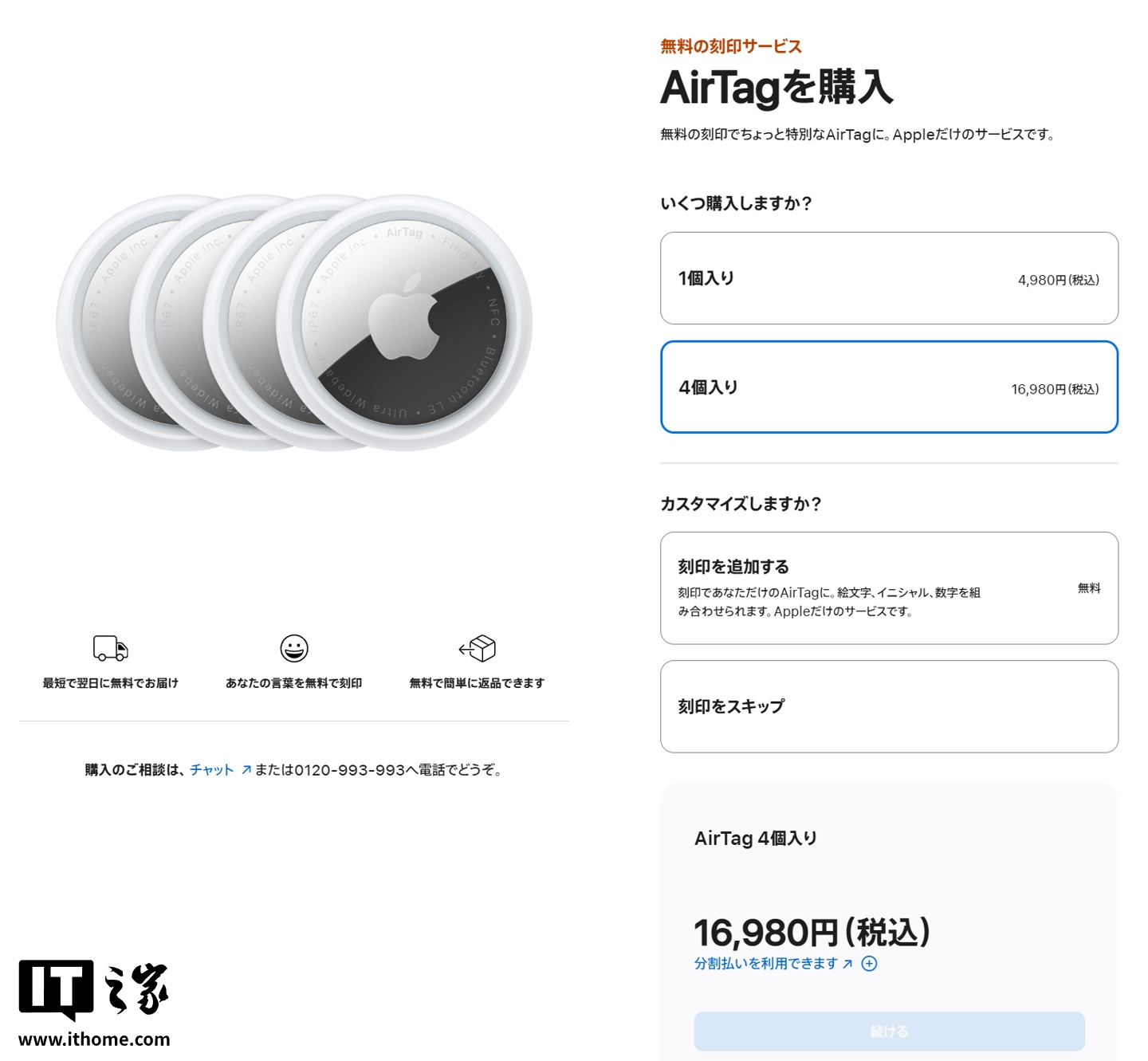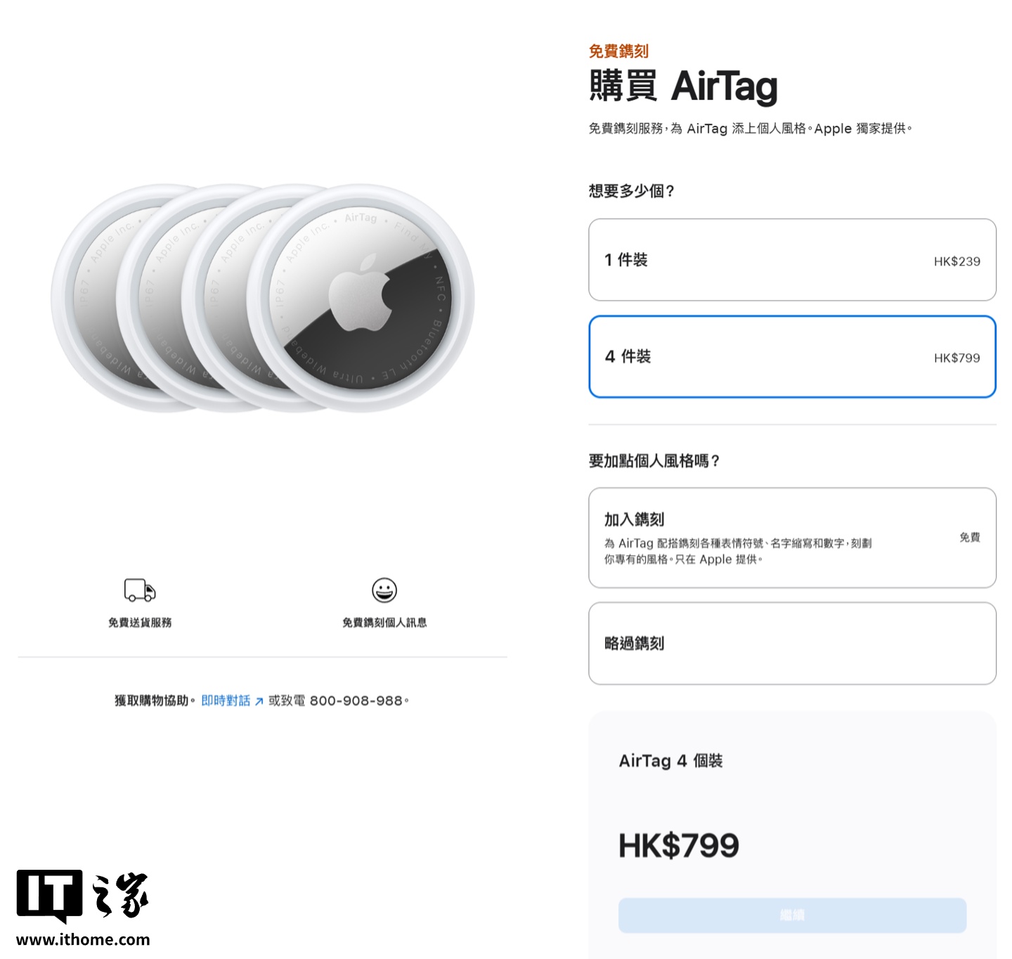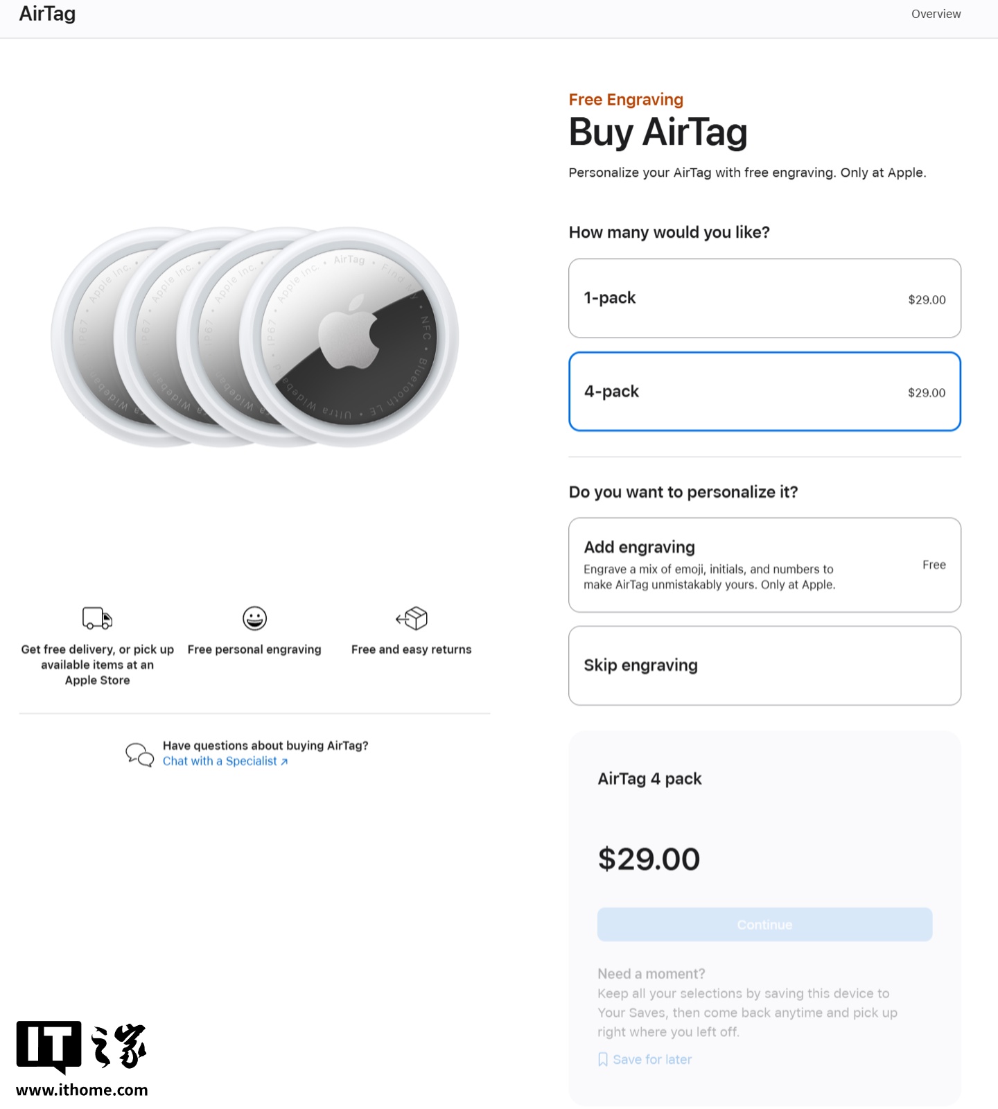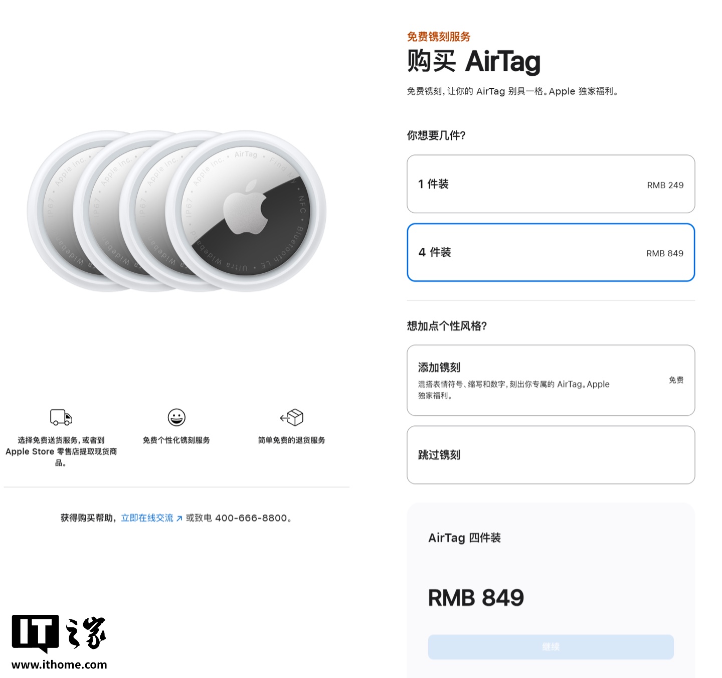 苹果美国官网闹乌龙,4 件装 AirTag 与单个装同价仅 29 美元