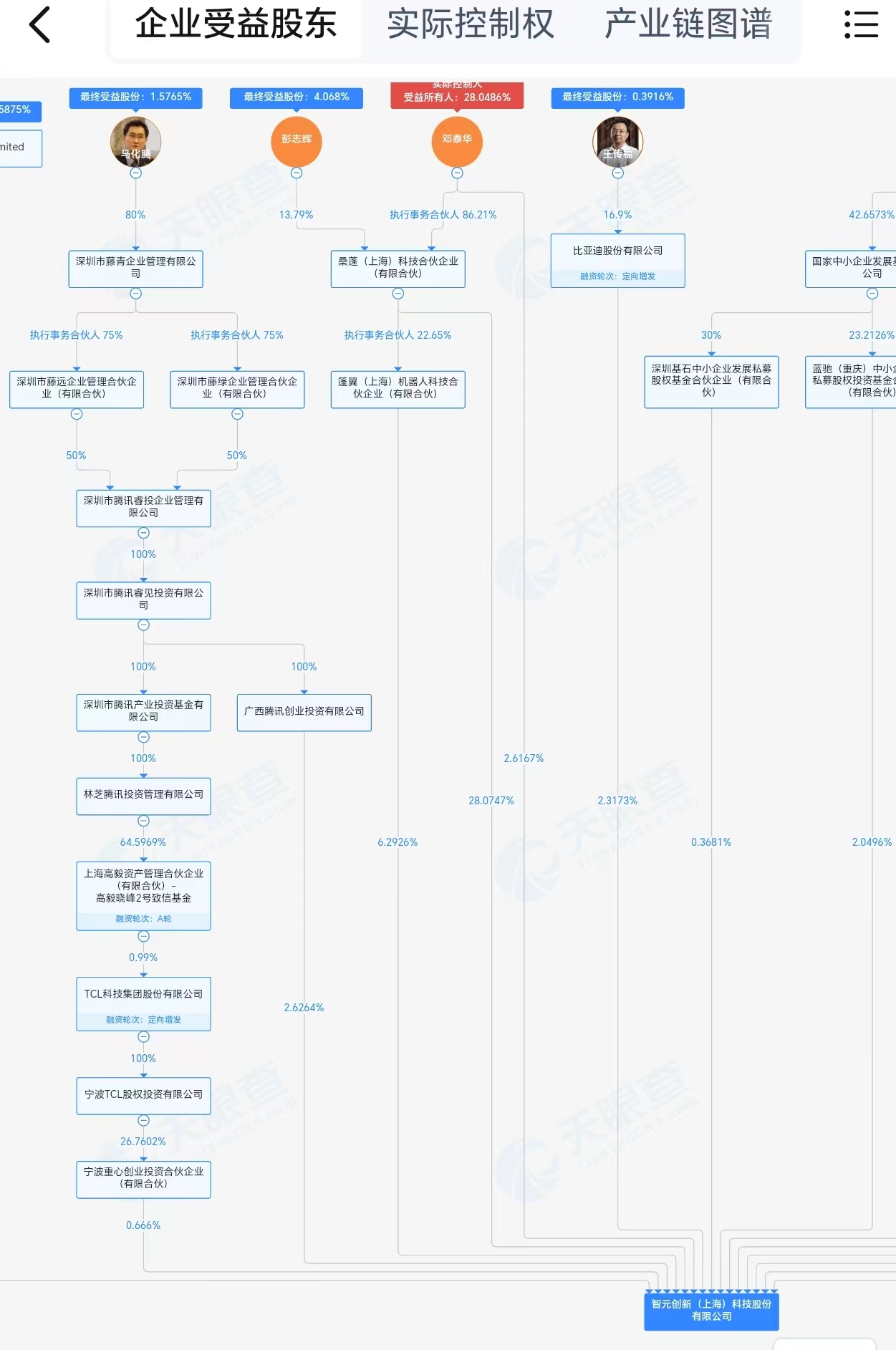 天眼查APP还显示,在企业受益股东方面,马化腾和王传福位列其中,最终受益股份分别约1.58%和0.39%。
