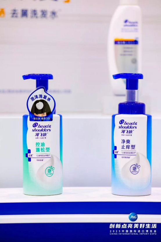 比如本届进博会上推出的海飞丝泡沫洗发水,就源于宝洁中国发现许多消费者只想快速清洗刘海,但普通洗发水搓揉起泡耗时费力。针对这一痛点,他们研发出一按就能出泡的泡沫洗发水,实现高效去屑控油。