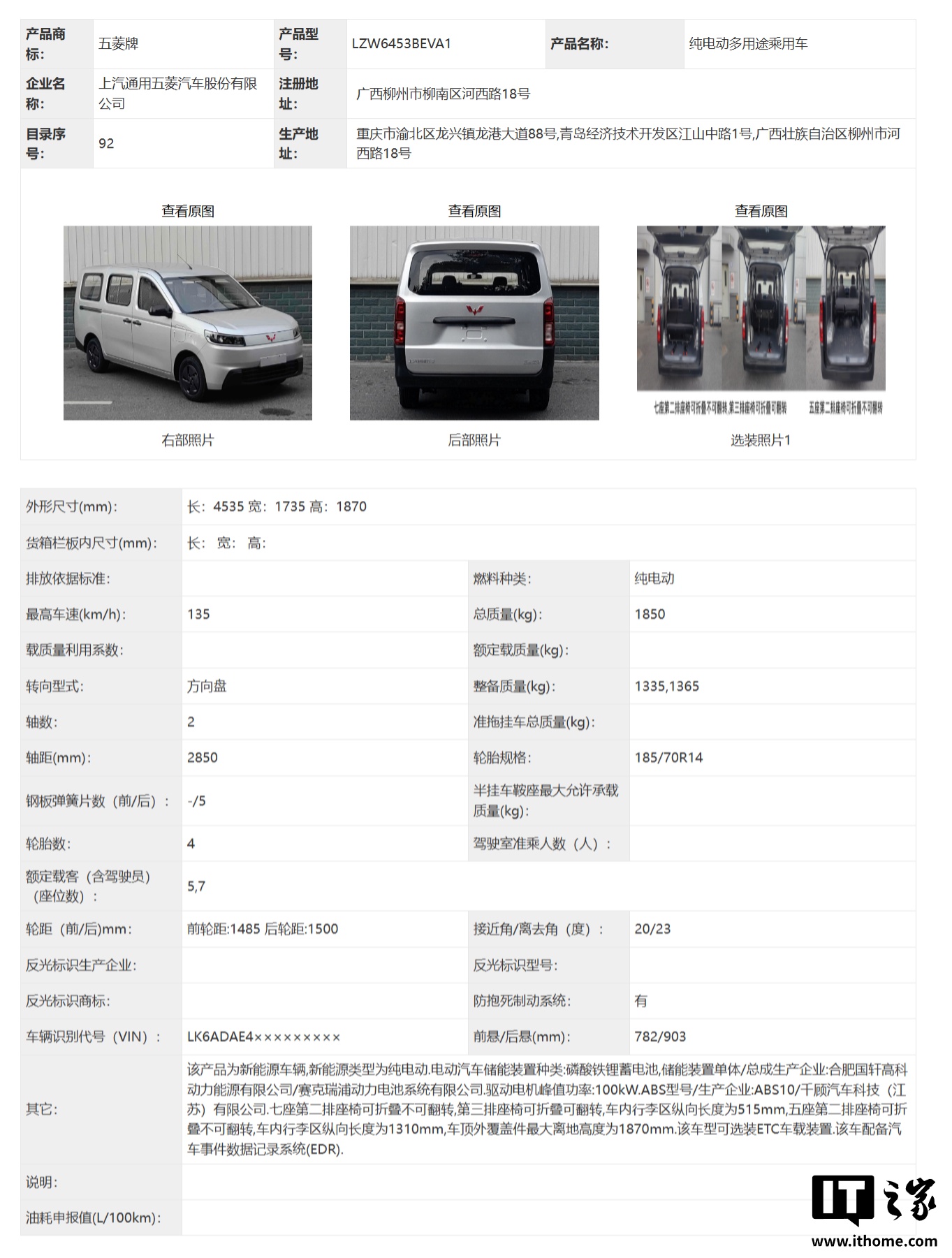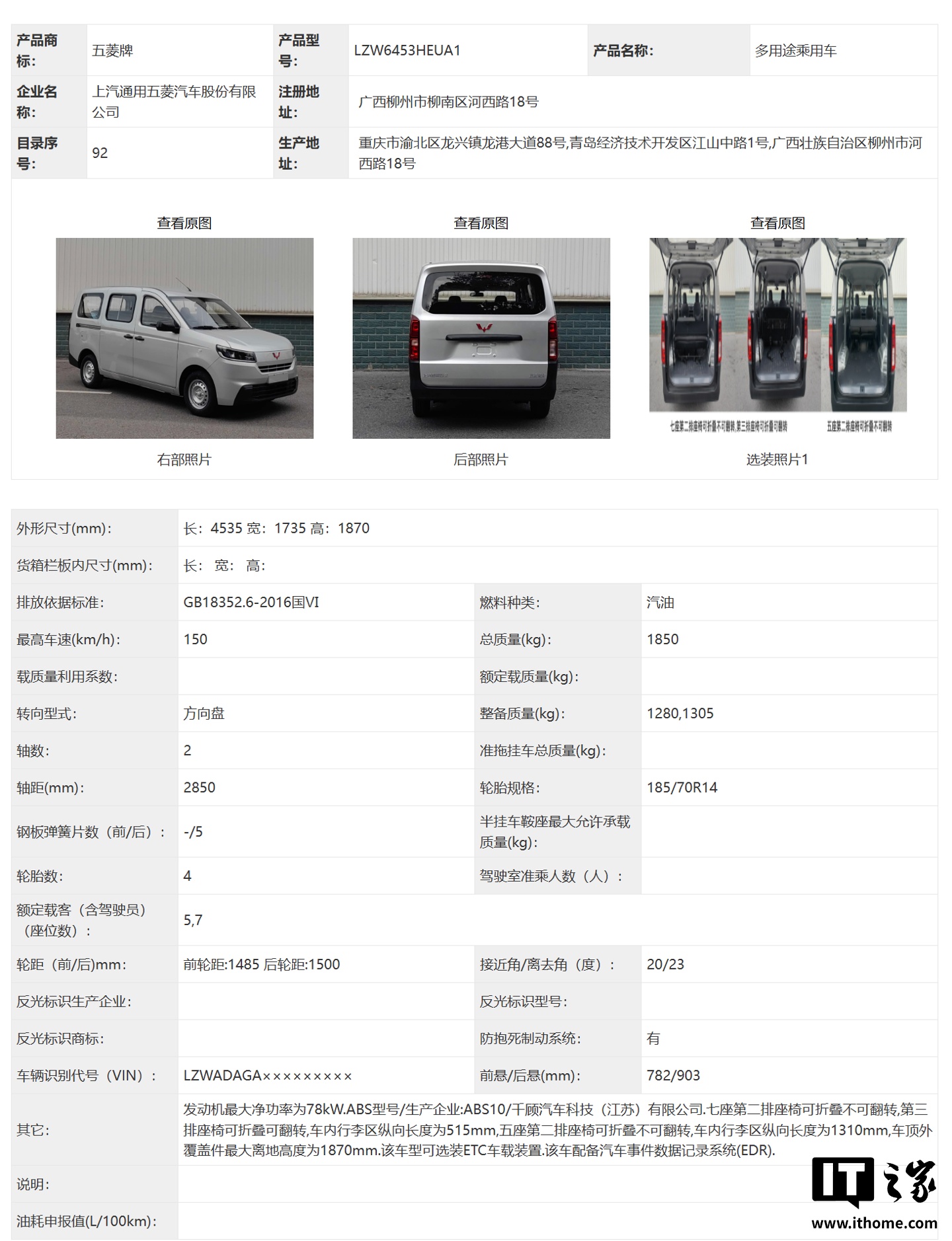 IT之家 11 月 10 日消息,全新五菱荣光汽车现已现身工信部第 401 批《道路机动车辆生产企业及产品公告》新产品公示名单,有纯电版和燃油版可选,两者尺寸相同,还能选择五座版和七座版。