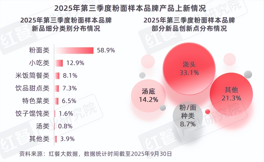 2.粉面:粉面类新品占了近六成,地域特色浇头被持续开发