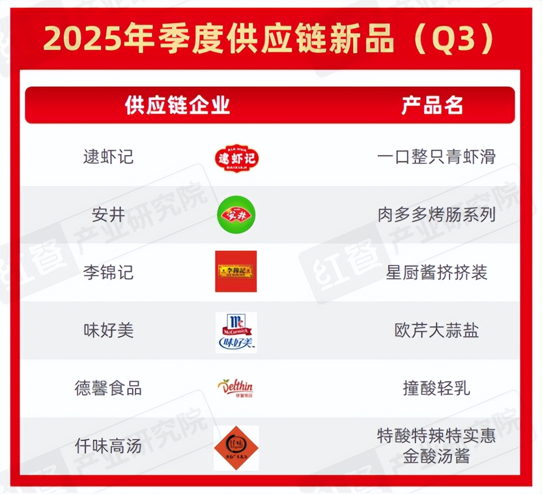 季度供应链新品,则是由红餐产业研究院特别监测了各大供应链企业的上新动向,并从中筛选出的表现亮眼的季度供应链新品,旨在将供应链创新从幕后搬到台前,展示上游企业如何以创新赋能成为推动餐饮终端创意落地与行业高质量发展的关键支点,为餐饮行业从业者、投资人、消费者等提供参考。