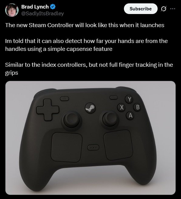 候选曲目包括:第二代Steam手柄;1200美元的Deckard高端头显;定制Fremont主机。泄密者还提供了一张AI生成图片向大家展示新手柄的设计思路: