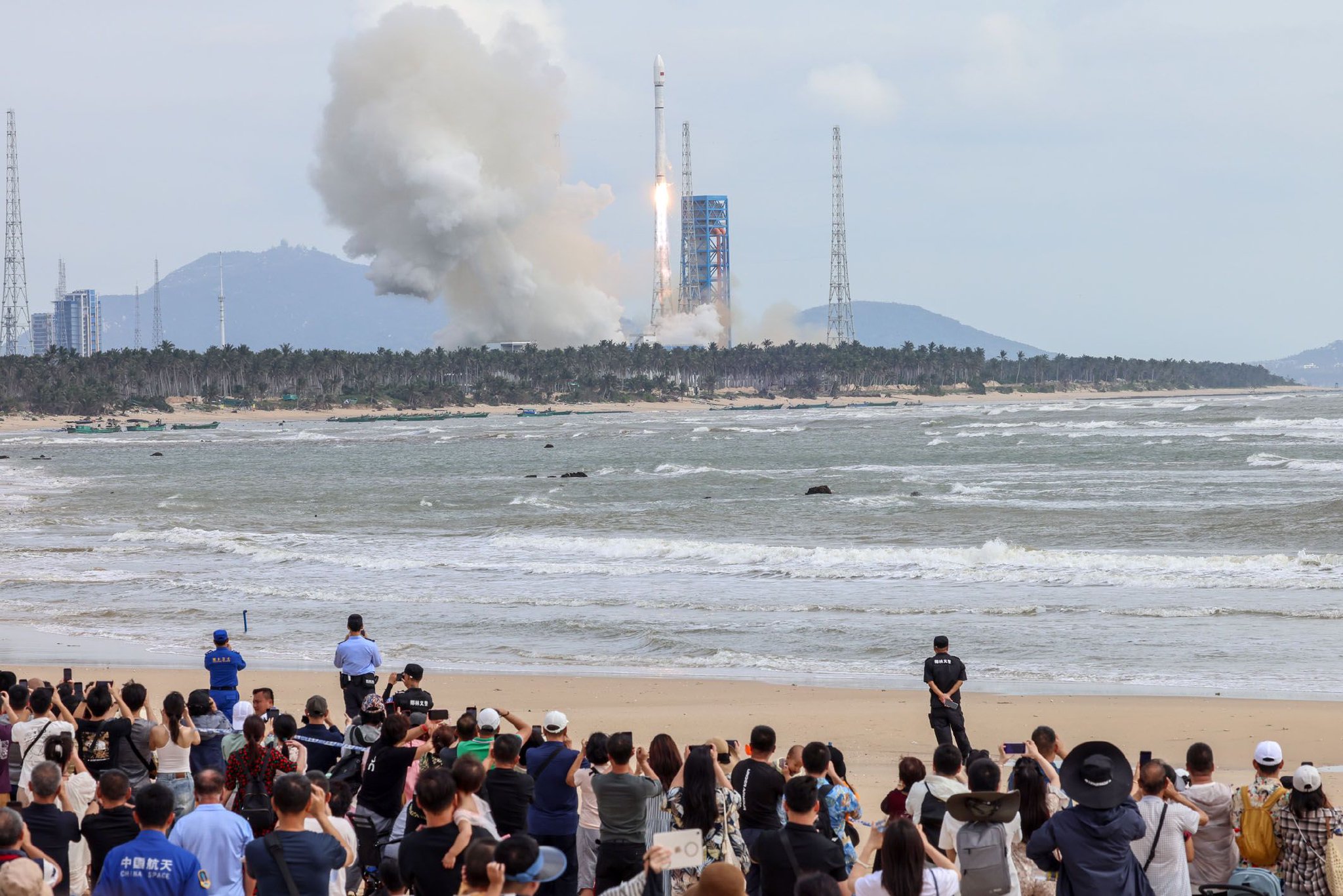 图为长征十二号运载火箭在海南商业航天发射场发射升空。