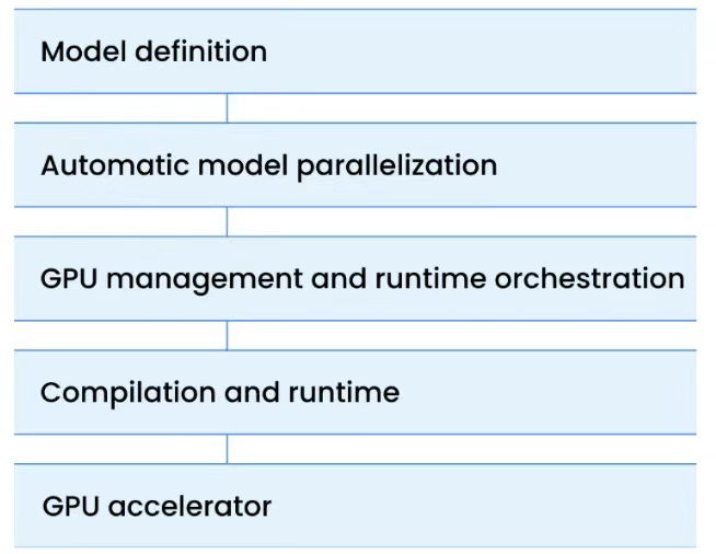 - 如果在模型定义层(Model Definition)内存管理不当,就会在并行化层(Parallelization)引发通信瓶颈。