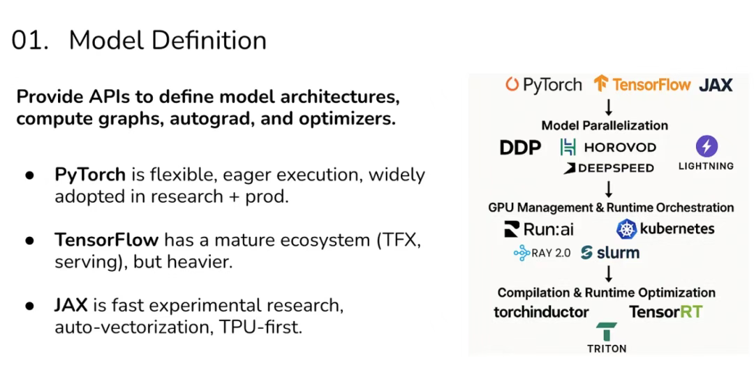 这是大多数机器学习工程师起步并投入最多时间的地方:定义 Transformer 层、将其接入 PyTorch、依赖自动微分系统,并将一系列张量运算串联起来。