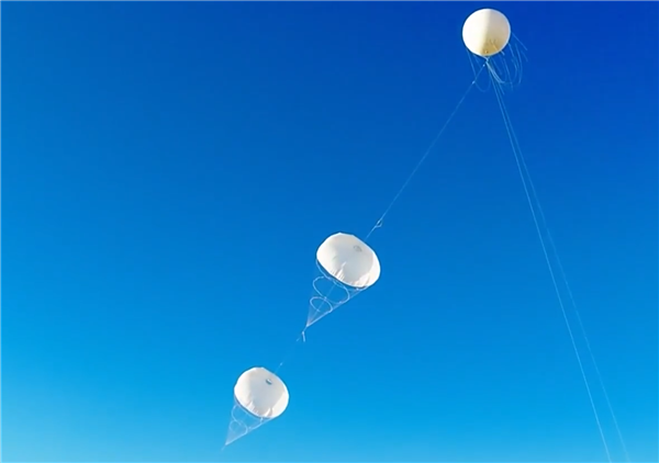 报道称,此次试验分别实现了5000平方米和双1200平方米捕风伞开收伞试验。