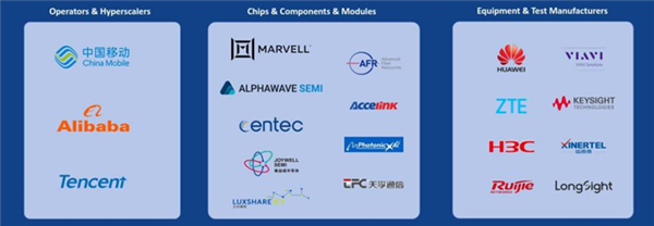 中国移动是400G per lane MSA工作组的主要发起方,支持企业包括阿里、腾讯等互联网巨头,Marvell、光迅、盛科、集益威等芯片与器件供应商,以及华为、中兴、VIAVI和Keysight等设备与测试厂商。