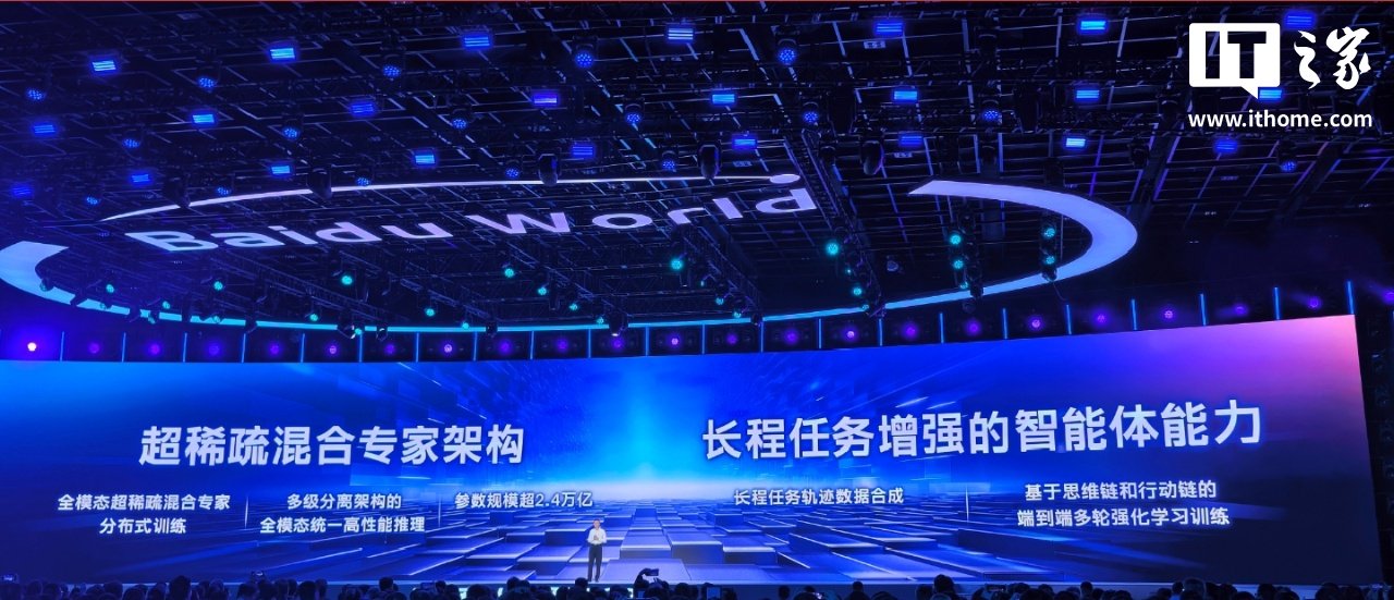 IT之家从大会获悉,文心大模型 5.0 采用超稀疏混合专家架构,参数规模超 2.4 万亿。