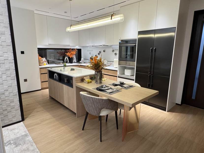 场景智能切换:在中国建科提供的柔性空间基础上,在中国建科提供的柔性空间基础上,海尔智家三翼鸟依托Uhome大模型以及智家大脑AI感知能力,实现全屋场景的智能联动与自适应。比如,智慧餐厨里一句话就能开启沉浸式浪漫就餐模式;智慧卫浴采用四分离+电动移门设计可供多人同时使用,马桶间配备应急呼叫系统,发生意外时可及时呼救;书房开启阅读模式后,暖黄的阅读灯亮起,营造专注阅读的场景氛围。