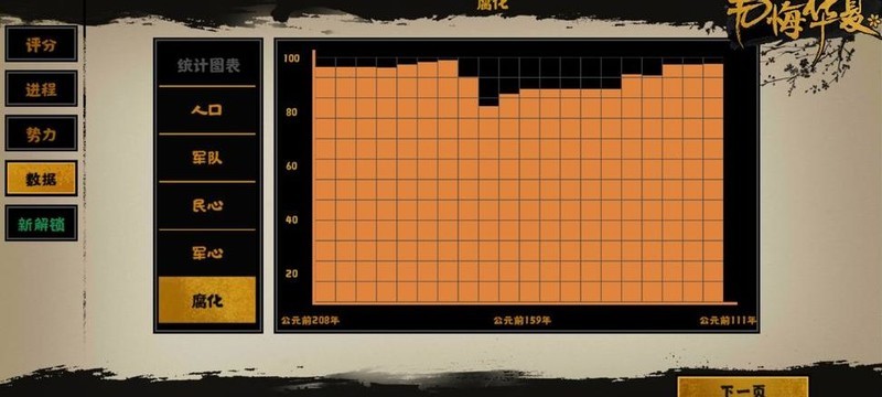 如何应对妲己所带来的严重腐败问题?关键在于理解腐败的实际影响并制定有效策略。首先,腐败最直接的后果是触发醉生梦死结局,导致角色死亡、游戏结束。但在夏商周时期,这一结局其实可以转化为一种资源与民心之间的交换机制,只要策略得当,反而能化危为机。其次,高腐败会带来巨大的钱粮消耗压力。对此,最优解并非保守经营或停战积攒资源,而是主动出击——持续发动战争。虽然战斗本身耗费资源,但相比维持军队长期闲置所产生的开销,实际消耗更低。通过不断作战,不仅能有效控制军费支出,还能在胜利后获得补给和收益。只要保持高强度的军事行动,资源不仅不会枯竭,反而会出现盈余。在线操作一至三分钟即可回本,实现可持续征战。然而,新的难题浮现:兵源从何而来?难道要无休止地征兵?显然不可持续。真正被忽视的是妲己的一技能——魅惑。合理运用魅惑,可在战斗中大幅降低伤亡,甚至实现以敌养己。如此一来,战争消耗减少,兵力得以保存,资源循环畅通,最终形成一个高效运转的扩张闭环。