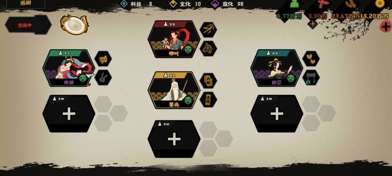 妲己仍用于保持高威望,姜尚与哪吒组合可在维持高民心的同时无视民心惩罚强行行动,并提供强大战力。攻占城池后选择获取钱粮,实现以战养战,确保资源充足,持续作战无忧,有效抵消妲己带来的高腐败负面影响。