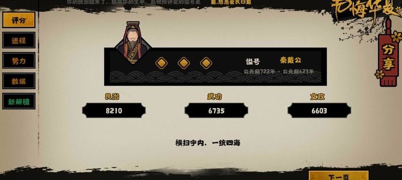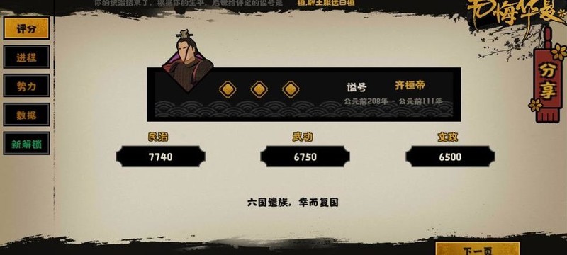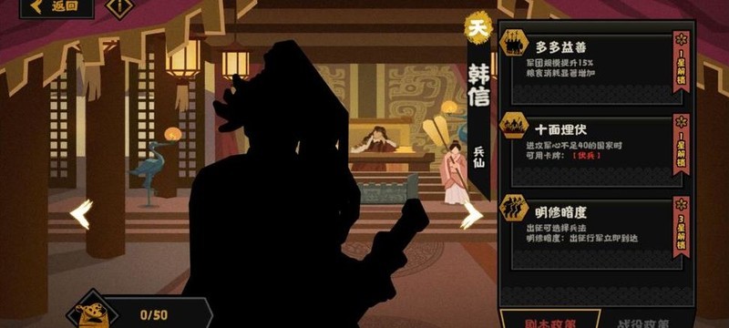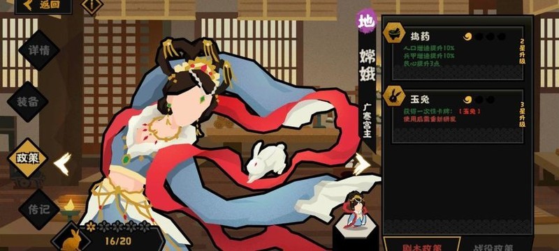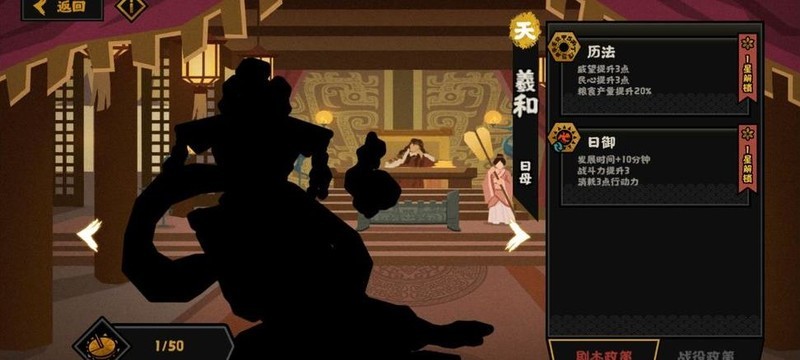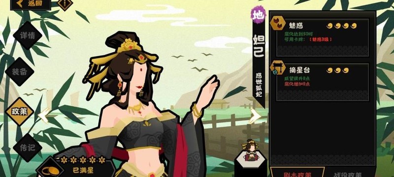 接着谈谈妲己的二技能——摘星台。其基础效果提供6点威望与6点腐败,数值相当可观,却常被玩家弃用,主要原因在于腐败带来的负面连锁反应令人头疼。然而,在我看来,腐败并非不可控的灾难,因惧怕副作用而放弃强力技能实属短视。尤其进入三皇五帝之后的关卡,腐败值本就容易自然攀升。若一味压制腐败,反而会导致军心涣散、民心下滑,稀有资源获取困难,攻占城池后的决策也将陷入两难。与其战战兢兢、束手束脚,不如彻底放任——腐败又如何?根本无需在意。这种摆烂策略虽能勉强通关,但绝非终点。我们怎能就此满足?真正的挑战,恰恰从这里开始。