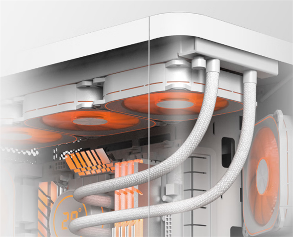 散热系统配置全面,支持在顶部安装3个120mm风扇(兼容水冷排),后部1个120mm风扇,侧面2个120mm风扇,底部3个120mm风扇,构建高效立体风道。